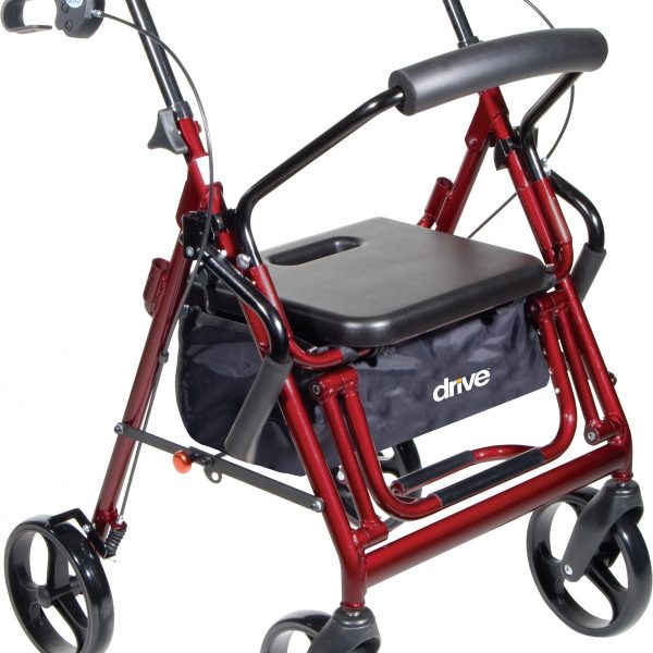 • Combines the features of a rollator and transport chair in one unit. An individual can ambulate independently or be pushed safely by a caregiver.